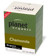Planet Organic Chamomile Herbal Tea is produced from organic chamomile flowers of certified herb gardens. Enjoy the delicate taste and character of this classic herbal tea.INGREDIENTS: Certified Organic Chamomile Flowers.25 bags per pack6 packs per cartonAvailable in Cartons Only