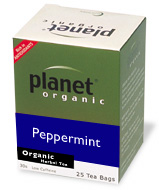 Planet Organic Peppermint Herbal Tea is selected from the finest certified organic herb gardens. The clean, pure taste of organic peppermint leaf is always a refreshing pleasure.INGREDIENTS: Certified OrganicPeppermint Leaf.25 bags per pack6 packs per cartonAvailable in Cartons Only