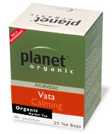 Planet Organic has carefully selected and blended certified organic herbs and spices, based on the ancient principles of ayurveda. Enjoy a cup of Planet Organic Calming Tea when the Vata dosha is out of balance.